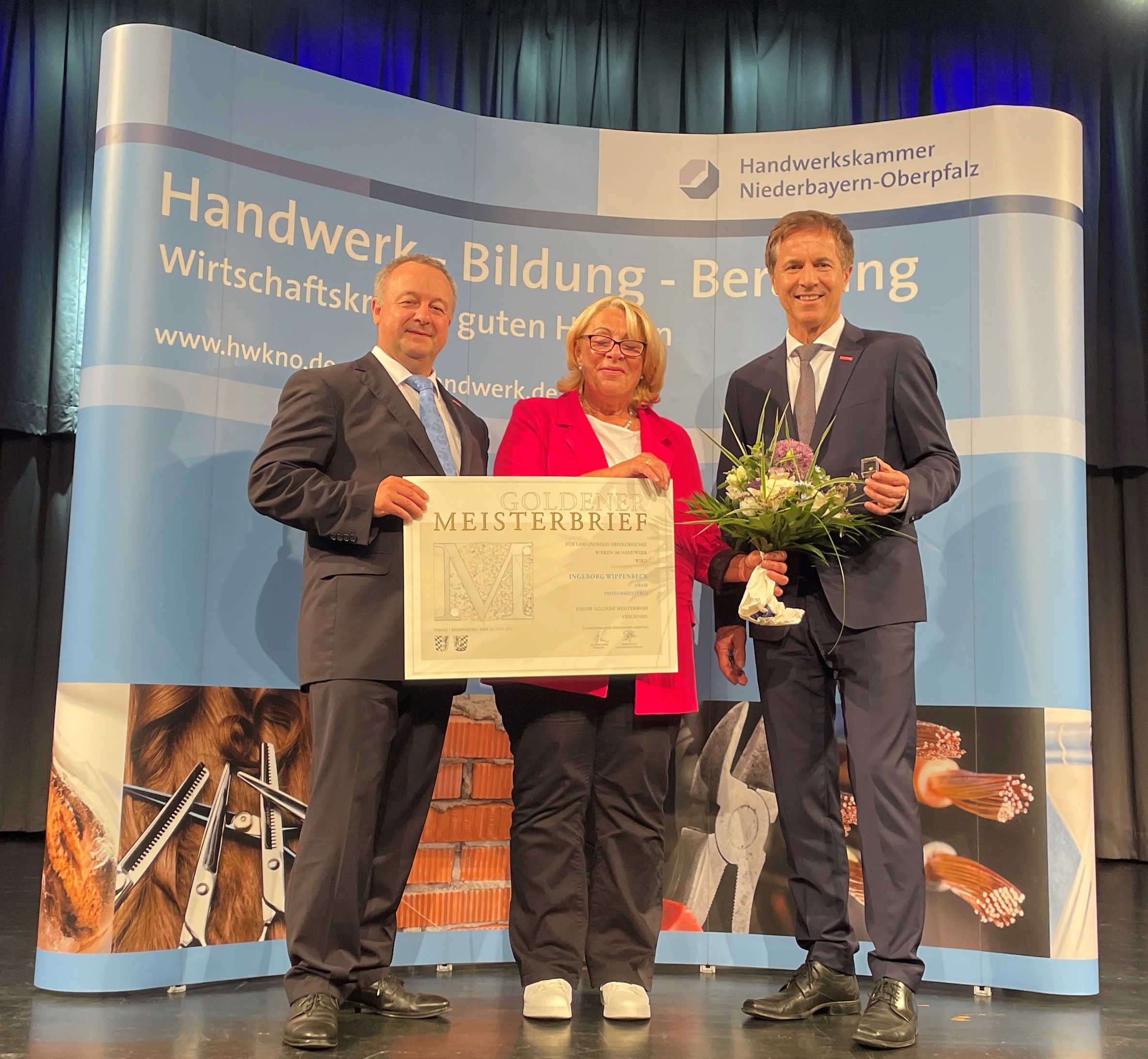 Die Friseurinnung Landshut gratuliert zur langjährigen beruflichen Meisterleistung Friseurmeisterin Inge Wippenbeck aus Aham erhält Goldenen Meisterbrief für 35 Jahre meisterhafte Leistungen im Dienst des Handwerks Die ...